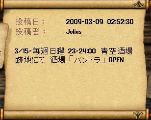 23:10頃に行ってみたら酒場がありました。なんだ、遅れてたのね。